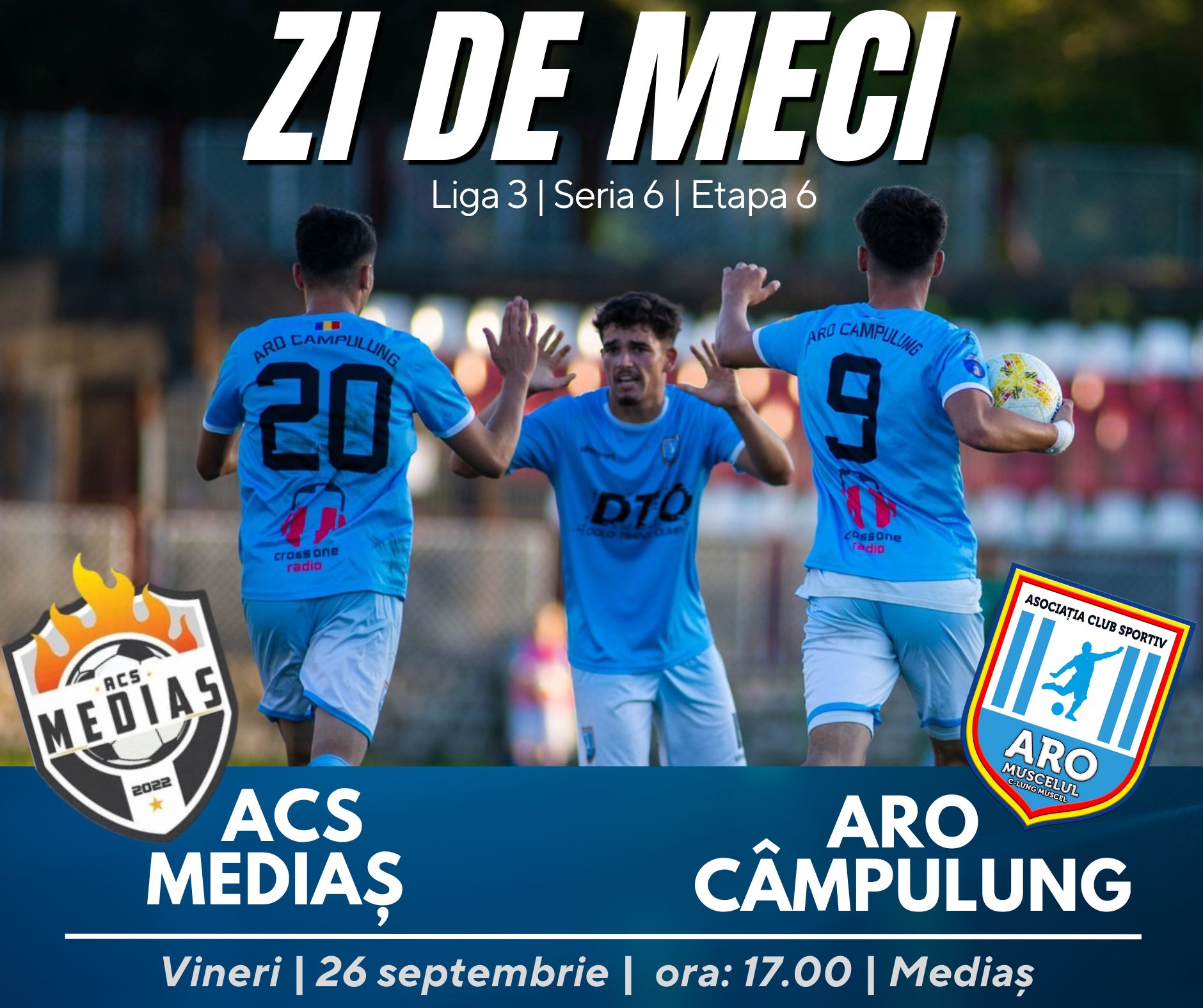 Astăzi: ACS Mediaș – ARO Câmpulung, în cadrul etapei a VI-a, în Seria 6, Liga 3.