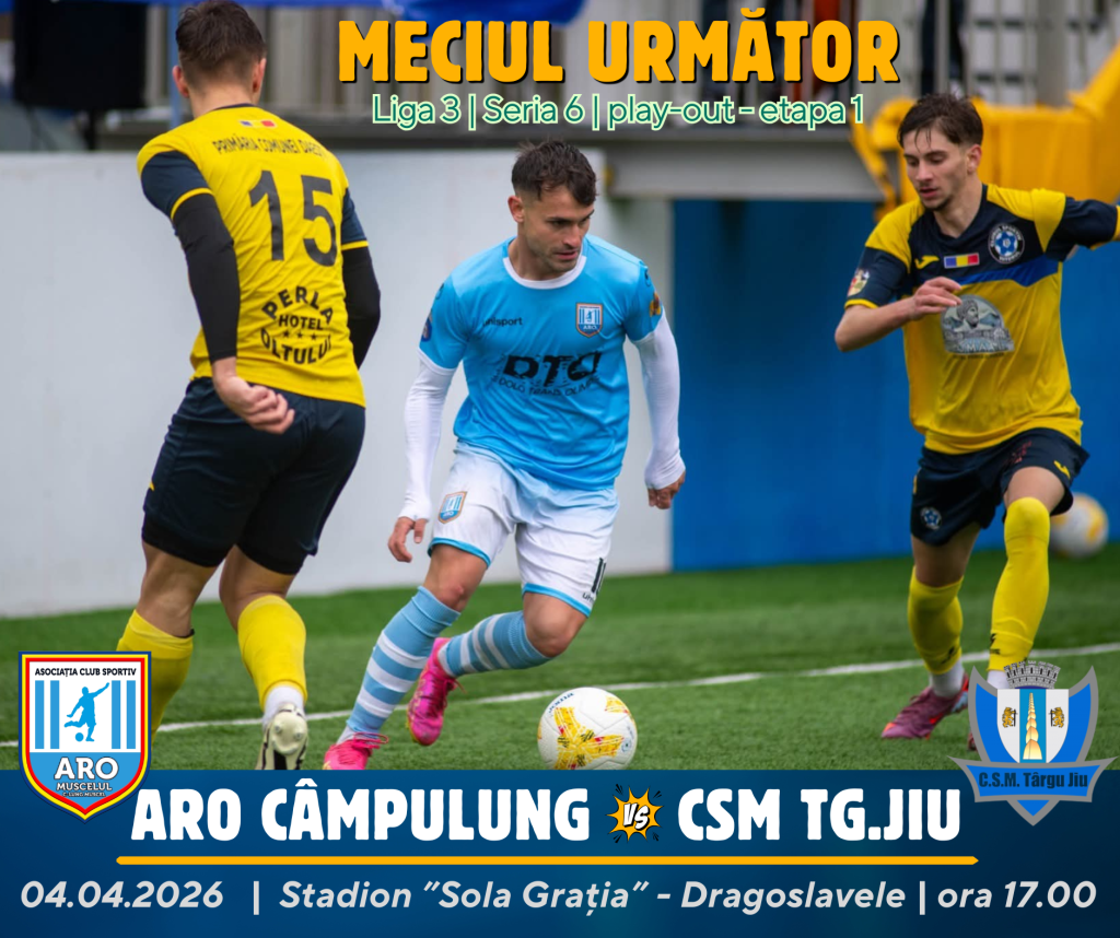 ARO Câmpulung a încheiat sezonul regulat pe teren propriu (5-2 cu Viitorul Dăești) și începe play-out-ul tot pe teren propriu, pe ”sinteticul” de la Dragoslavele, în fața formației CSM Tg. Jiu. Cele două echipe sunt vecine în clasament (locurile 4 și 5) și au același număr de puncte, câte 27. În sezonul regulat ambele întâlniri directe s-au încheiat la egalitate, 1-1 la Câmpulung și 0-0 la Tg. Jiu, ceea ce indică un echilibru între cele două formații!
