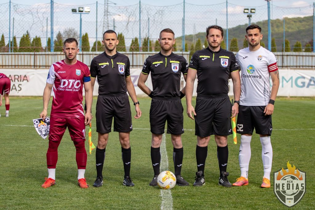 Gazdele au trecut rapid peste șocul debutului de meci și la scurt timp au trimis balonul în bara transversală și au mai irosit alte două oportunități de a egala, însă apărarea echipe noastre a funcționat perfect și a îndepărtat de fiecare dată pericolul! Totuși, în minutul 39 gazdele au egalat în urma unei lovituri libere, Alin DOHOTARIU reușind să trimită balonul în plasă cu prețul unei accidentări, jucătorul medieșean fiind și înlocuit!
