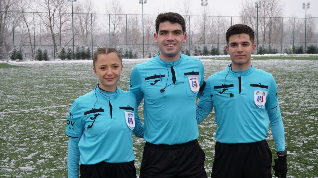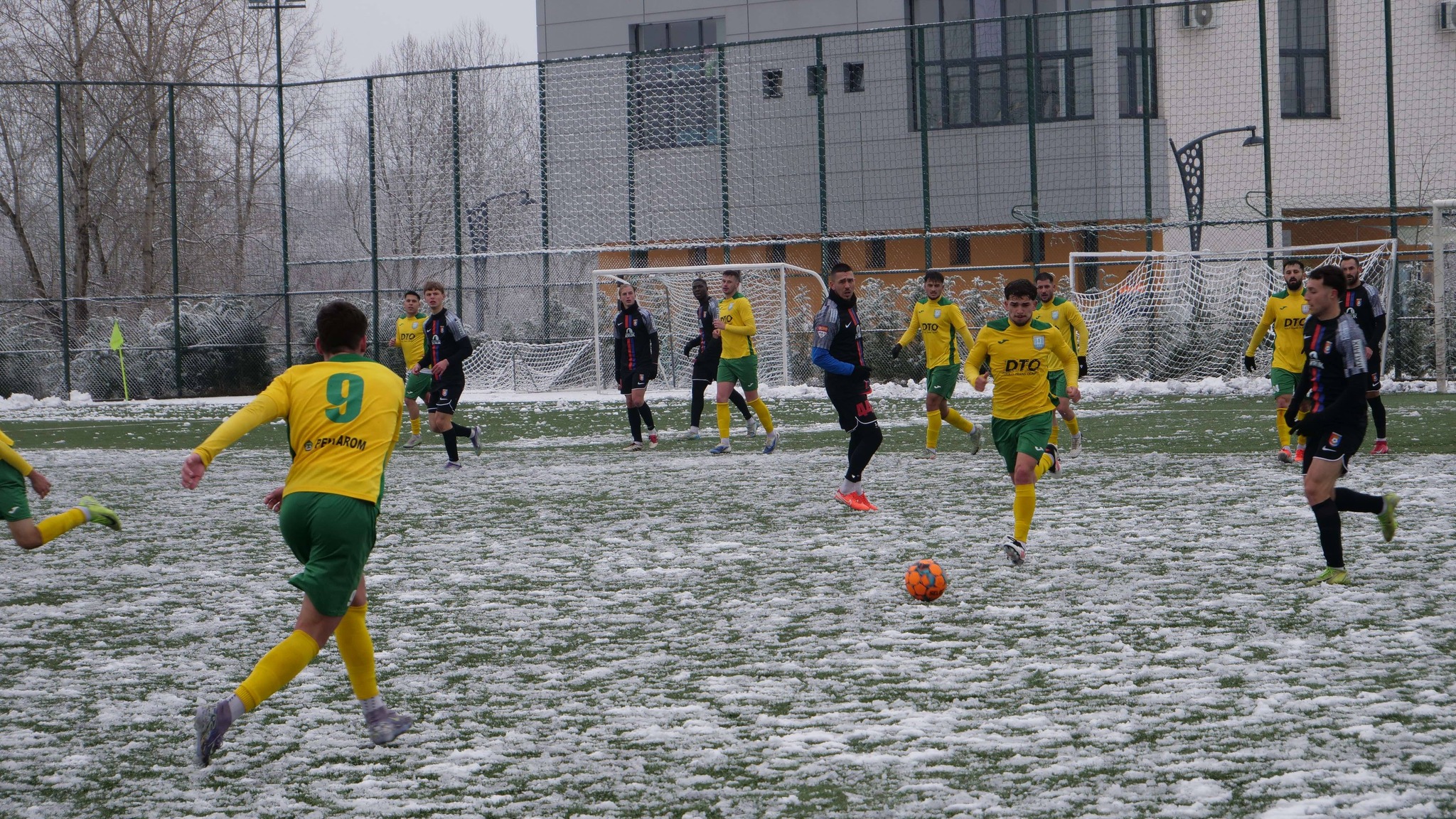 Zăpadă pe ”Central”, zăpadă și pe sintetic, organizatorii reușind în timpul scurt pe care l-au avut la dispoziție să curețe doar zonele din preajma celor două careuri! Chiar și în aceste condiții, cei aproape 200 de spectatori prezenți în tribune au putut urmări un meci frumos, echilibrat pe parcursul primelor 45 de minute cu ocazii la cele două porți! Echipa noastră a avut șansa de a deschide scorul pe final de repriză, însă Albert Jarcă a preferat să încheie singur acțiunea, trimițând balonul în plasa laterală, deși ar fi avut posibilitatea să-l scoată în fața porții pentru un coechipier! La scurt timp, în careul nostru, Marian Ghiță a scos balonul de pe linia porții păstrând, astfel, rezultatul intact! La ultima fază o primei reprize, însă, în minutul 45+4, gazdele au reușit totuși să înscrie prin Iulian Roșu care a șutat pe jos, la colțul lung, pentru 1-0!