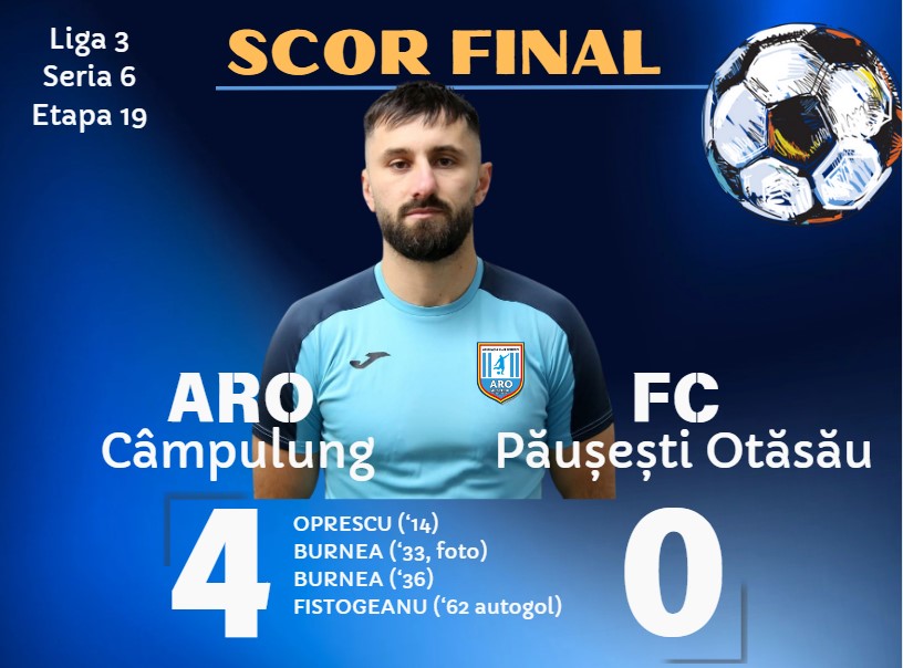 Deși tabela nu s-a mai modificat până la final, ARO a continuat să controleze jocul spre satisfacția publicului numeros prezent sâmbătă la stadionul din Dragoslavele. Este a patra partidă consecutivă în care echipa noastră obține un rezultat pozitiv, după 3-1 la Bascov și 3-3 acasă cu ACS Mediaș, în ultimele două întâlniri oficiale din 2025; 1-0 la Jiul Petroșani și acum 4-0 acasă cu Păușești Otăsău, în primele două întâlniri oficiale din acest an! ”ARO Câmpulung arată maturitate, organizare și eficiență, chiar și în condițiile unor absențe importante. Echipa lui Alin Popescu confirmă un început de an promițător și privește cu încredere spre următoarele etape” – scrie Informația de Muscel.